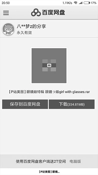 进入百度网盘,别人分享的文件,稳定1M/S;