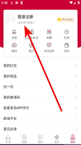 打开爱青岛应用后,点击底部导航栏中的“我的”选项,即可进入个人中心页面。