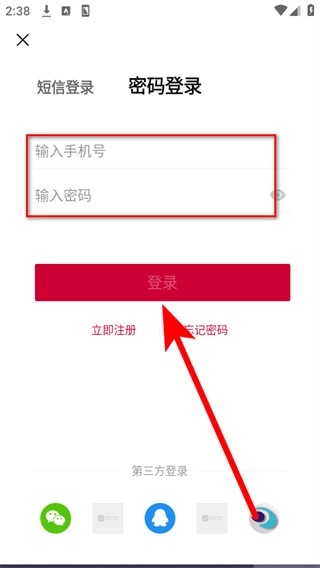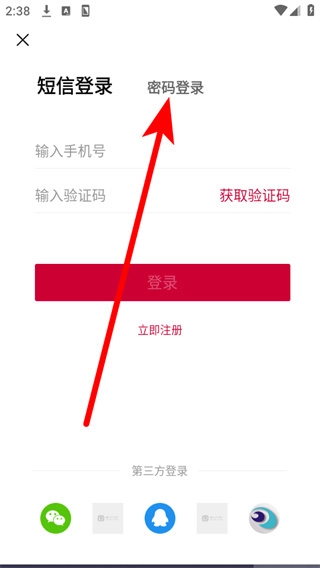 在登录界面里,点击密码登录选项,就能切换至密码登录模式。