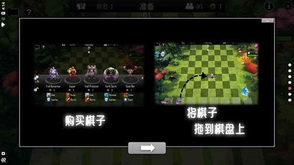 最后,按照教程的图片指引,购买相应数量的士兵,接着在棋盘上进行合理布局,这样就能开启战斗了。