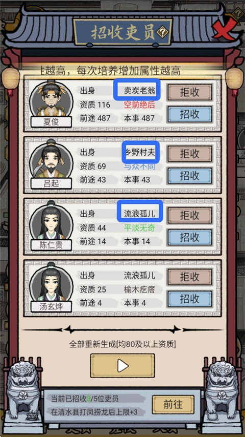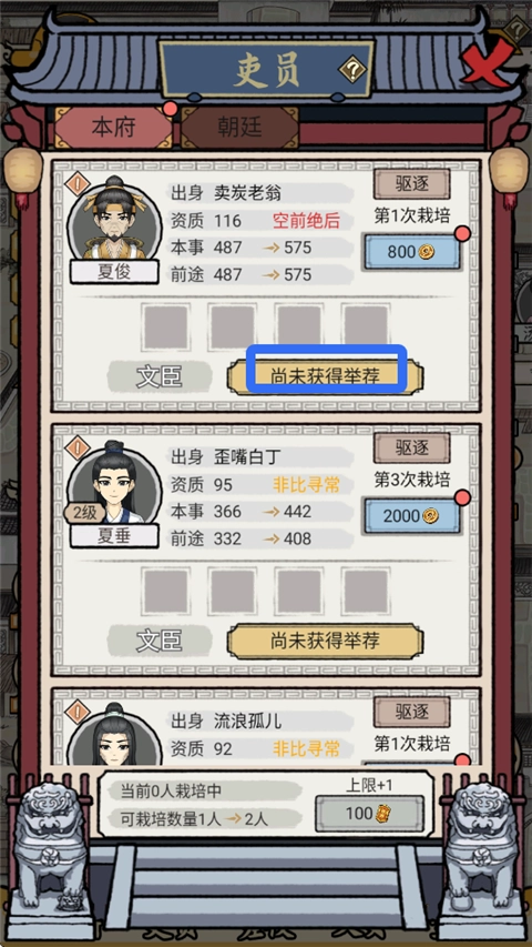 在游戏里,每隔一段时间就能在吏舍里招到吏员