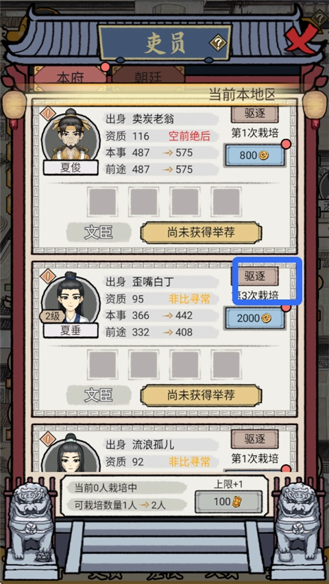 可以将不想要的吏员驱逐