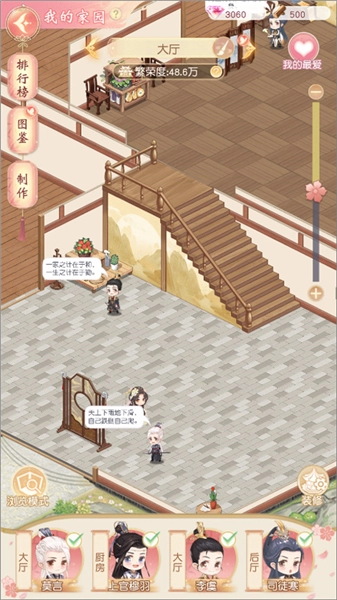 掌柜能够收集家具,自主布置房间,当集齐家具套装后,就能为所有伙伴带来属性加成。