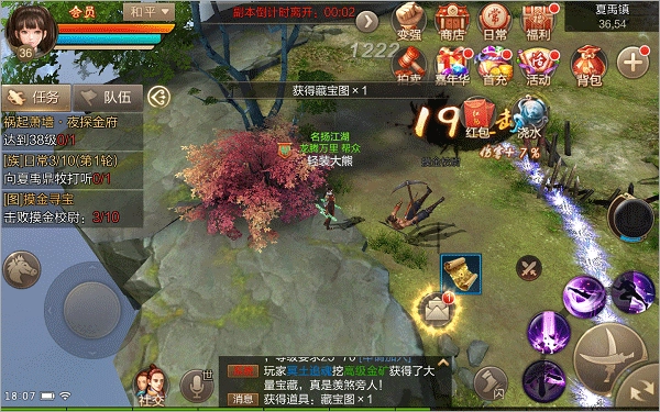 拿到藏宝图后,你可以前往对应的地点寻宝,能得到诸如气血宝石、一心一意、精炼材料、强化材料之类的不同奖励。不过在寻宝时可能会遇到各种意外状况,像受伤、中毒,或是挖出守护宝藏的妖魔。要是挖出妖魔,它会随机出现在地面上,而且系统会发布世界公告。