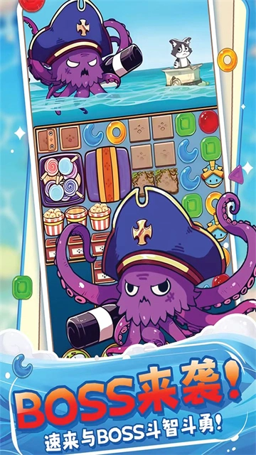 新增故事体系与剧情脉络,融入扣人心弦的情节,带领玩家逐步探索喵喵们的奇妙世界,一同对抗邪恶的大章鱼!