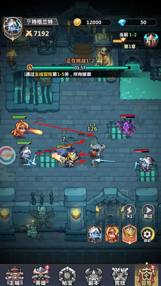 开启冒险模式,挑战主线关卡,操控英雄施展技能,战胜敌人推进剧情。