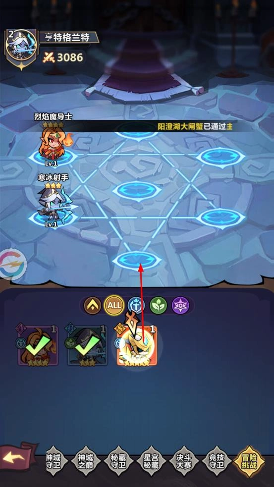 在英雄布阵界面,把圣堂骑士、烈焰魔导士这类英雄拖拽到阵型的空格中,就能组建出战斗阵容。