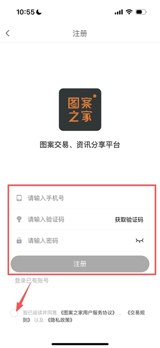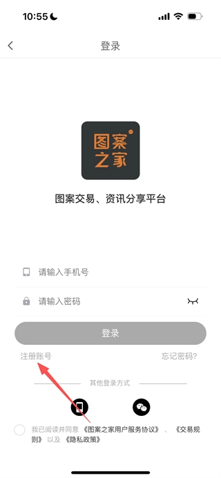 在图案之家首页,点击底部的“我的”选项,即可进入登录页面。