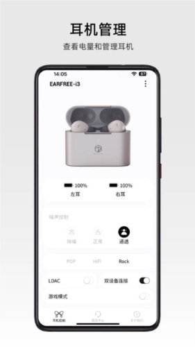 还能为耳机开启降噪模式,以此帮助用户迅速减少耳机的噪音干扰,让你拥有更优质的体验。