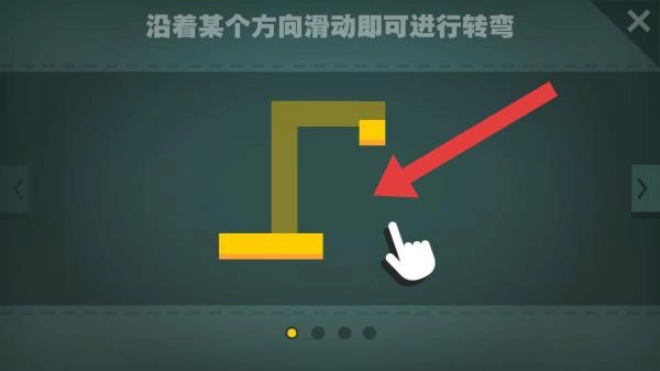 画面展示了新手指引教程,依据文字提示,只要朝着特定方向滑动就能完成转弯,进而执行相应的操作。