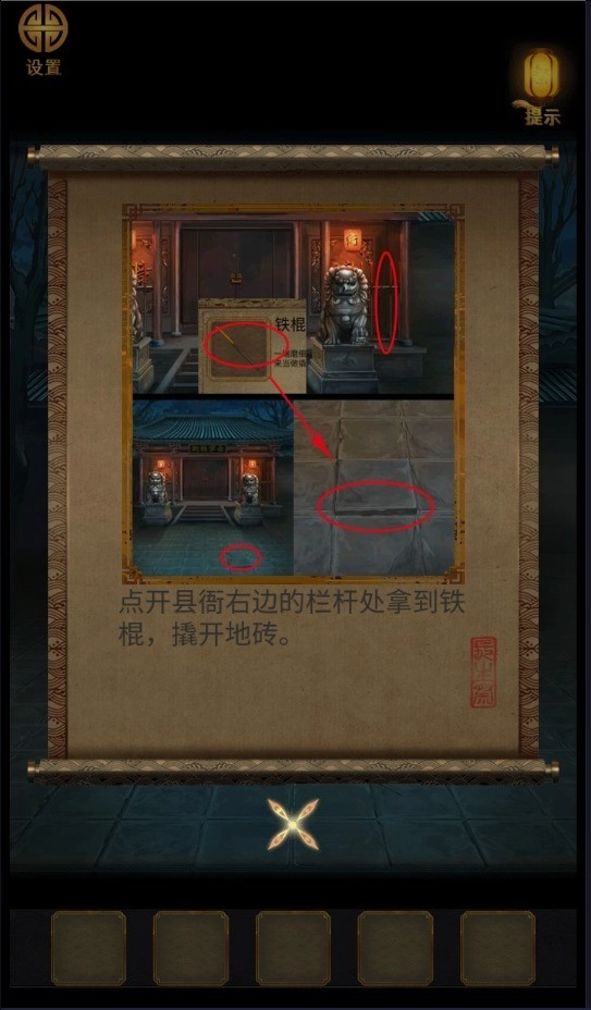 根据提示使用道具寻找线索。