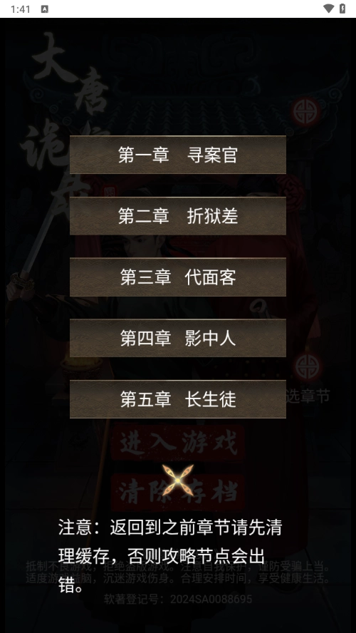 大唐诡异录正式版是一款主打中式恐怖题材的案件解谜冒险游戏。在游戏里,玩家将化身大唐时期的巡捕,凭借自身的智慧与思路各类谜题和案件。通过梳理案件中的全部线索,最终揭开案件真相,揪出幕后真凶。这款游戏的可玩性相当高,体验也十分出色,快来尝试游玩吧。
