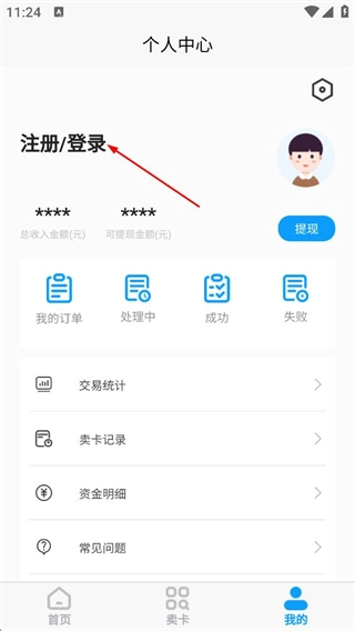 在收卡云首页,点击底部的“我的”选项,即可进入个人中心页面。