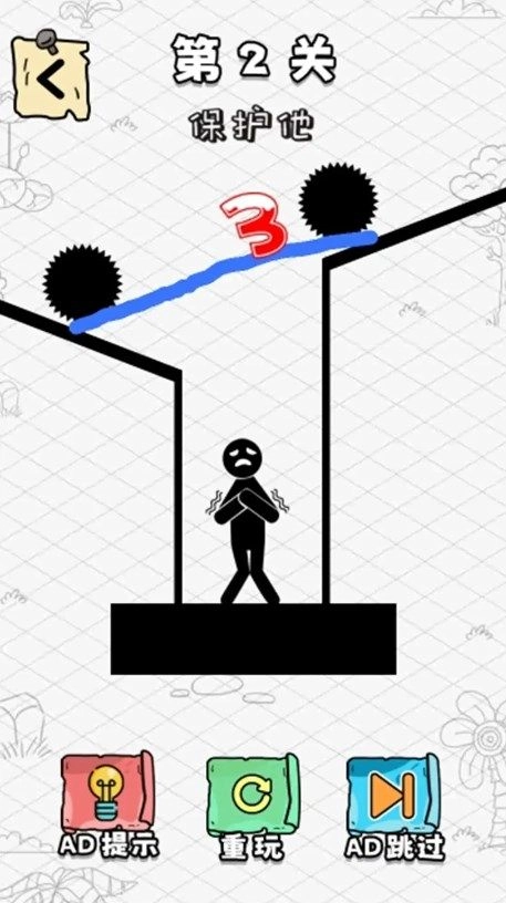 躲避障碍:火柴人会遭遇各式各样的障碍与攻击,玩家得巧妙绘制路线,帮助它避开这些危险。
