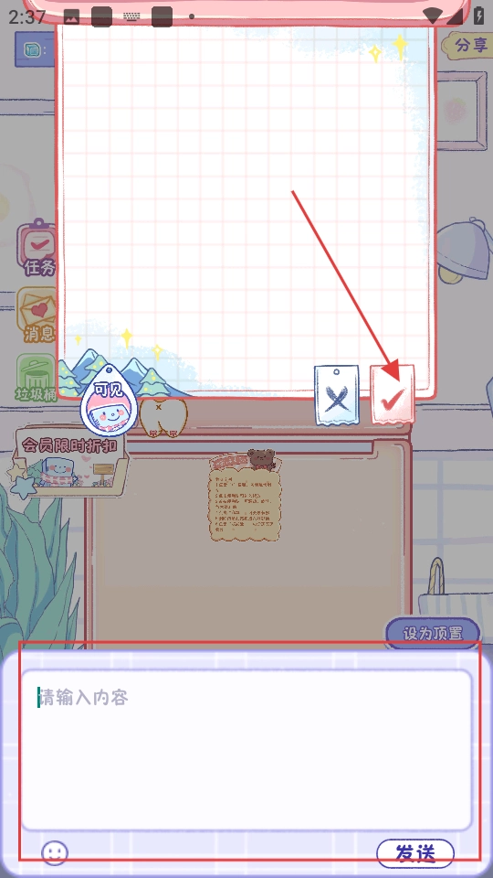 在便利贴输入内容,点对勾完成编辑。
