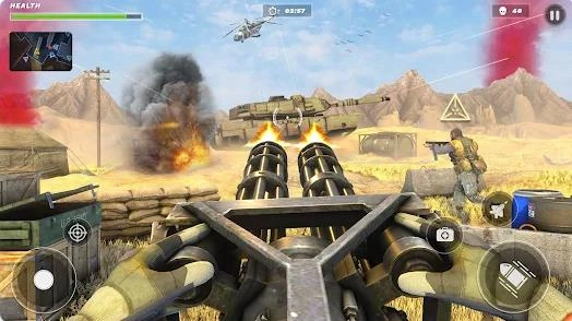 游戏的画面呈现堪称精良,从漫天沙尘到震撼的爆炸特效,视觉冲击力十足,让玩家能深切感受到战斗的沉浸氛围。