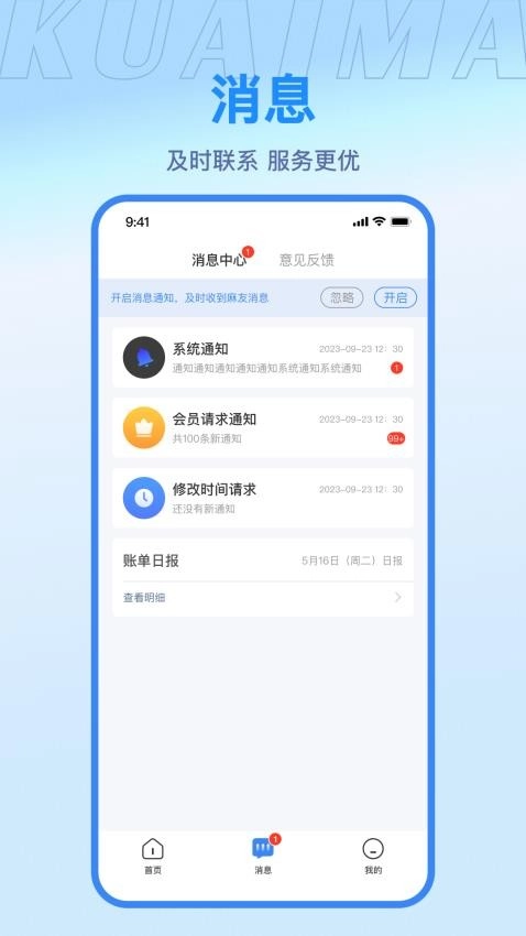 软件会对预约消息、顾客评价反馈等各类消息进行实时通知,便于商户及时了解相关情况。