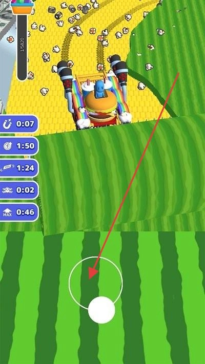 先试试“控车捡道具”!沿着彩色赛道开,3秒内瞄准绵羊或金币,别碰围栏,每收集5组道具就能得1钻石,超流畅,还能攒升级材料。