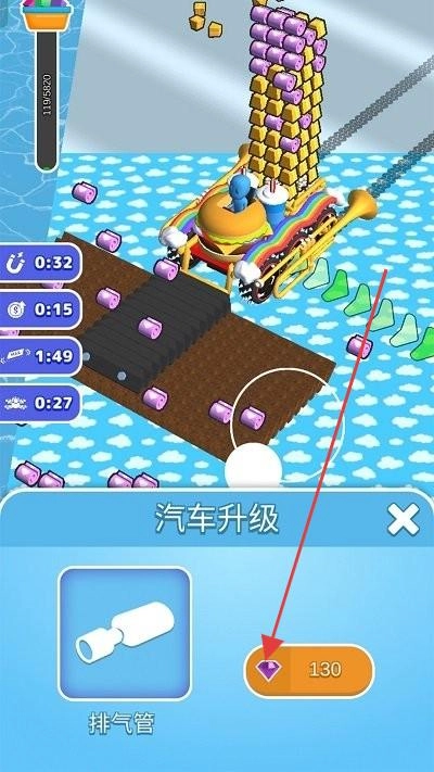 来做“汽车部件升”任务!只要攒够130颗钻石,点击“排气管”选项进行升级,通过两步确认操作就能完成。升级后移速直接提升20%,性价比超高,还能解锁轮胎、外观等全新改装选项。