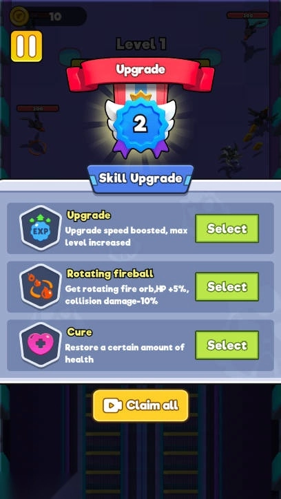 多维成长策略:构建“等级提升+技能选择+武器解锁”的三重成长体系。英雄等级决定基础战力,技能搭配影响生存续航,飞镖、斧头等式样武器带来差异化攻击体验,可灵活打造专属战斗风格。