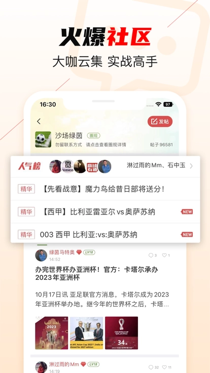 超火爆的足球社区,一起聊球分析赛事,球迷的聚集地,认识同好中人。