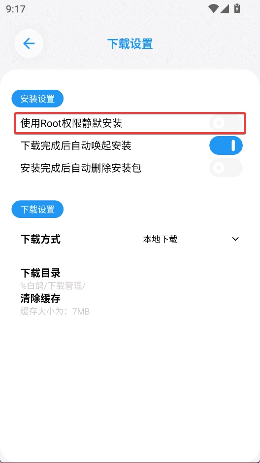 开启使用root权限静默安装