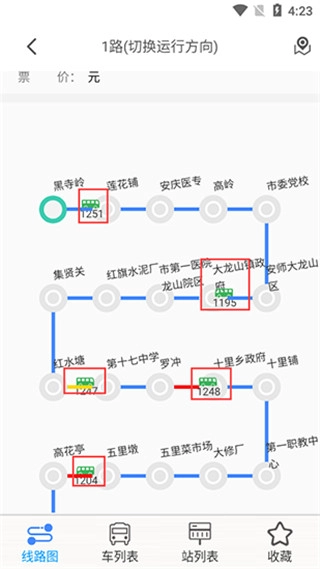 在线路图里能看到绿色的公交车图标,它所指的就是公交车当前所在的位置。