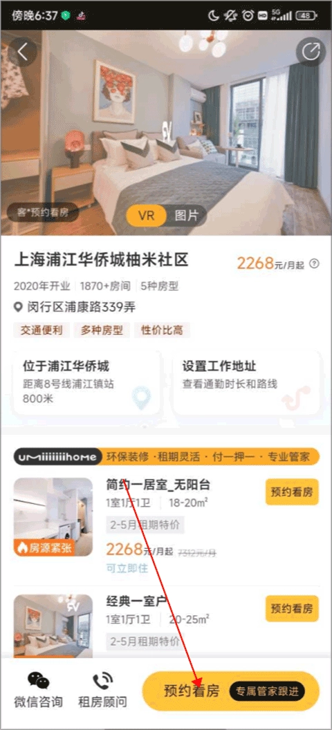 进入之后你可以点击下方的预约看房即可。