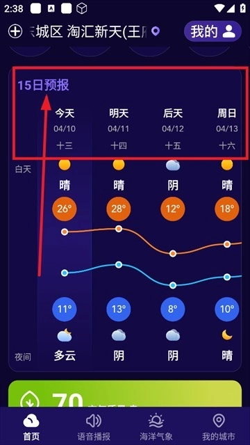 点击进入后,用户即可查看未来15天的天气预测