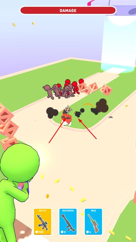 到了后面的关卡,敌人的数量会变多、实力也会增强,赛道上的障碍物同样会更复杂,记得继续用不同的武器,灵活控制绿色小人。