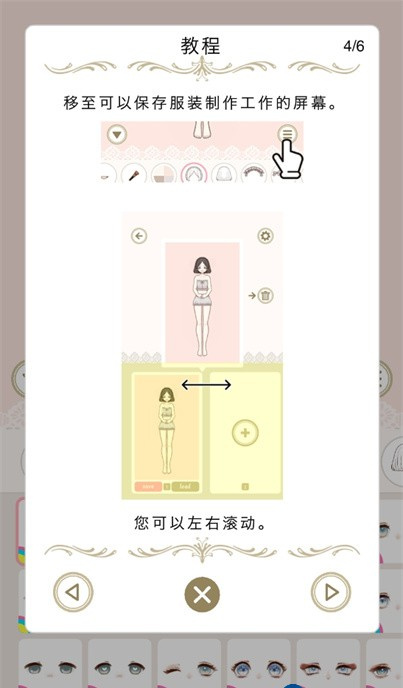 4、移至可以保存服装制作工作的屏幕,可以左右滚动。