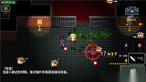 2、像素血腥风格:以像素画面展现血腥暴力元素,战斗时怪物炸裂的视觉效果冲击力十足,打造出别具一格的暗黑系视觉氛围。