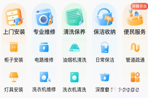 【服务全面】:提供安装、维修、清洗、保洁、疏通、拆旧等260余项居家服务,种类齐全,满足各类家庭需求。
