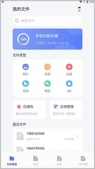 【智能文件管理】一键扫描手机内所有文件,按类型、时间、大小分类呈现,快速找到所需文档,摆脱杂乱无章。