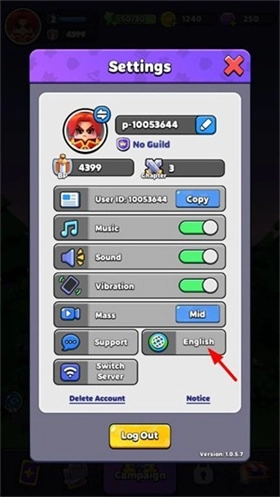 然后点击English切换语言。