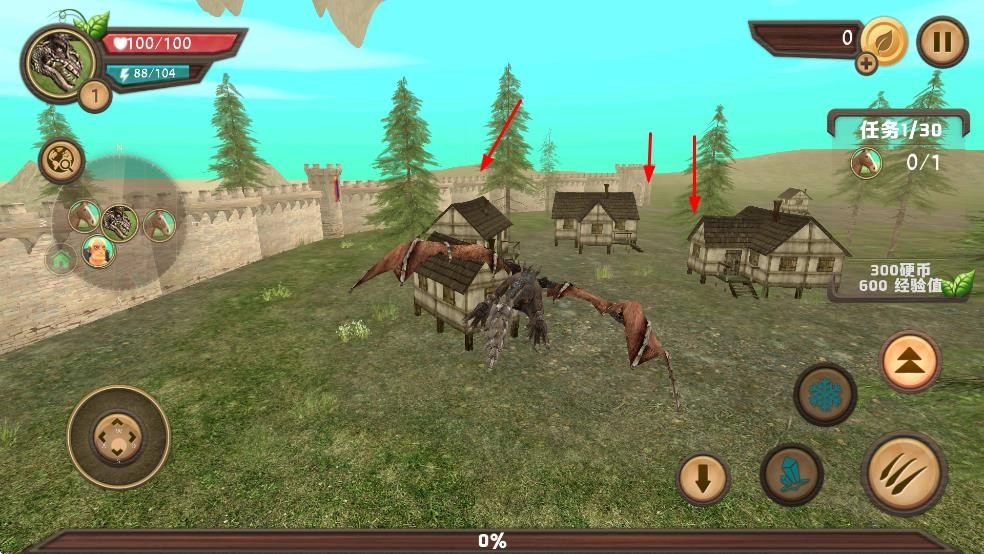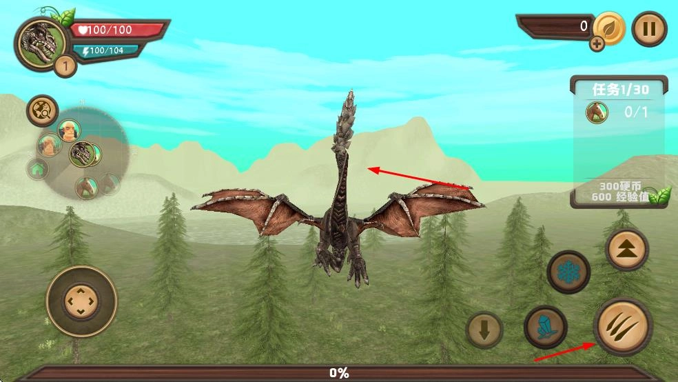 通过操控左侧摇杆来控制龙身移动,切换技能栏以选择合适的攻击方式,比如爪击技能,从而开启冒险战斗。