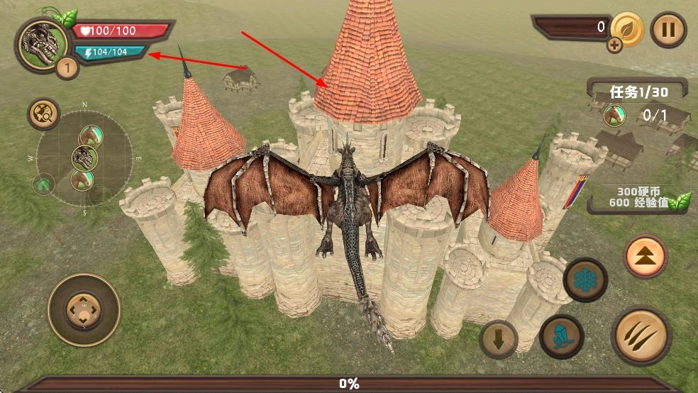 注意左上角的血量和能量条,维持好自身状态,通过飞行来探索各个场景,到达城堡之类的区域就能解锁新的内容。