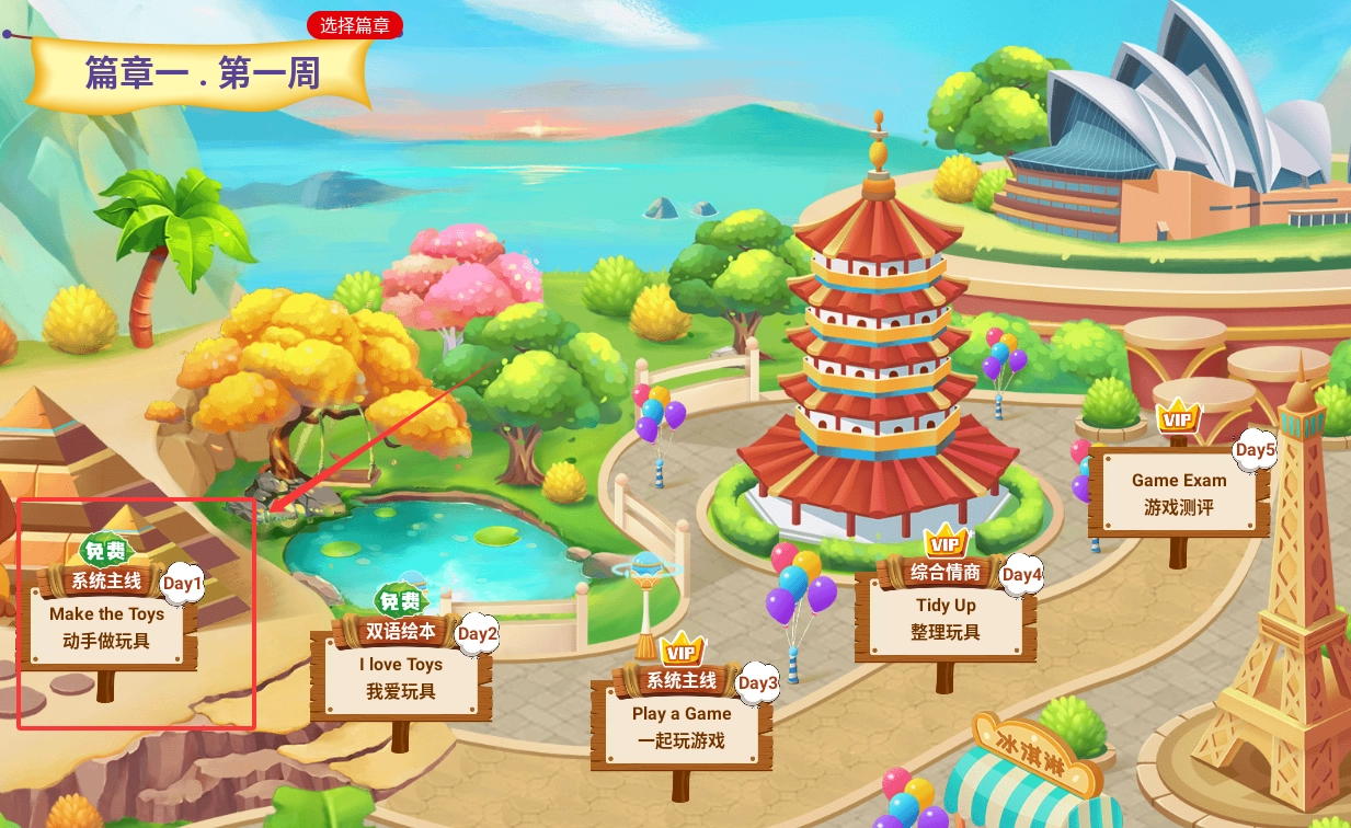 进入篇章后,点击“动手玩玩具”,能帮助宝宝提升认知能力与记忆力。