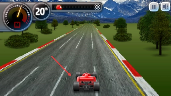 驶入森林赛道后,驾驶红色赛车时请沿着道路中线行驶,通过仪表盘来掌控节奏,注意避开可能存在的障碍,全力冲向终点。
