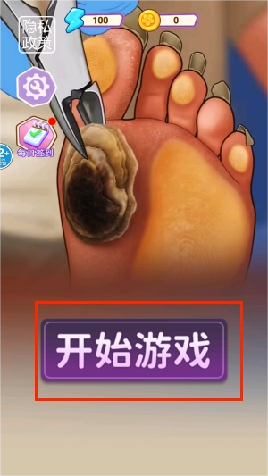 打开游戏后,轻触屏幕中央的“开始游戏”按钮,系统便会自动进入耳部护理模拟场景。