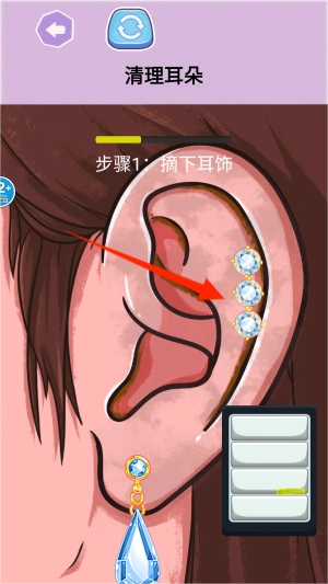 在模式选择页面,找到“挖耳朵”专业玩法,点击进入逼真的耳部护理环节。