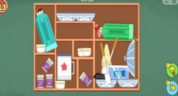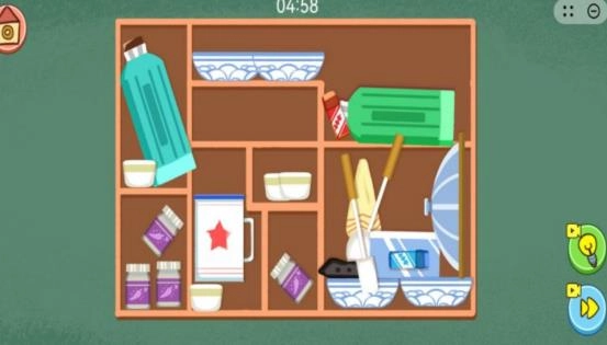 玩家要对场景里的物品加以分类,再把它们放置到规定的收纳盒或者固定的位置当中。