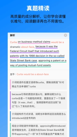 开发长难句智能拆解功能,借助语法成分标注与分层翻译展示,助力用户攻克复杂句式理解难题,提高阅读分析效率。