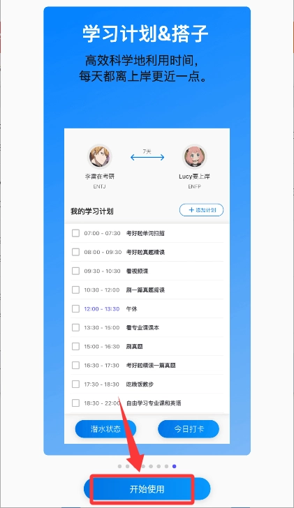 于学习计划介绍页选择开始使用功能。