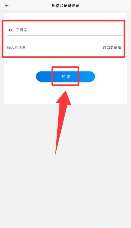 输入手机号及验证码完成登录操作。