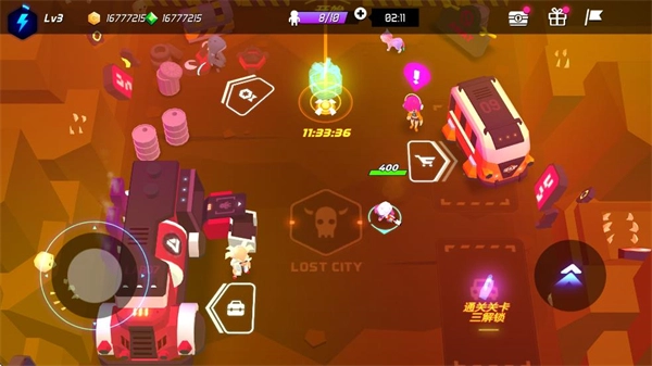 关卡的设计颇具挑战性,从普通敌人到强力阻碍,难度层层递进,既考验玩家的操作技巧,也需要合理运用升级后的战力,才能突破重重难关。