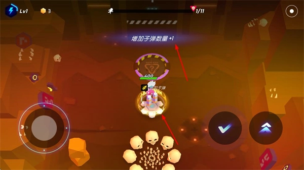 战斗结束后,选择“子弹数量+1”的技能并点击确认按钮,这样可以提升武器的射击频率,从而增强战斗能力。
