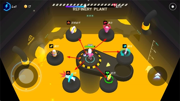 在精炼厂场景下,挑选不同的增益效果,就能得到相应的加成,通过积累资源来推动成长。