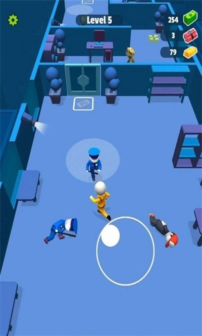 操控角色时,要长按屏幕下方的无限符号并拖动,以此引导黄色小人灵活移动;过程中需留意躲避手持红色武器和棍子的巡逻人员,同时收集右上角随机刷新的特殊道具。