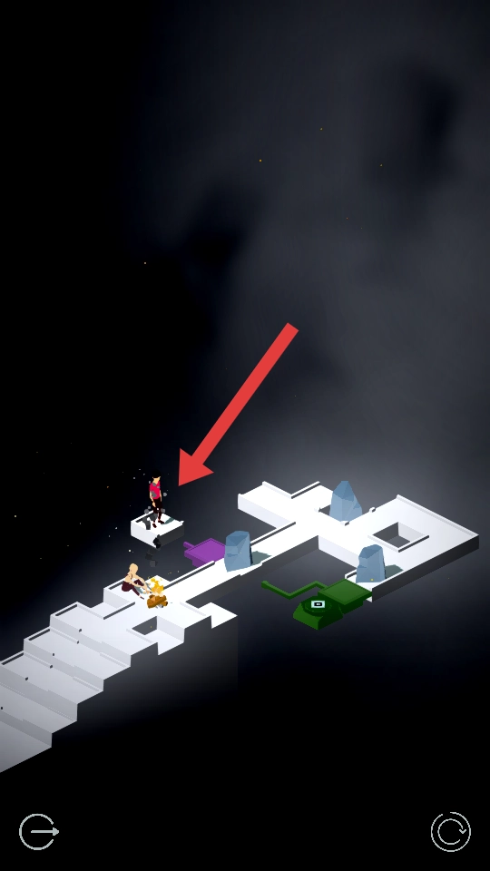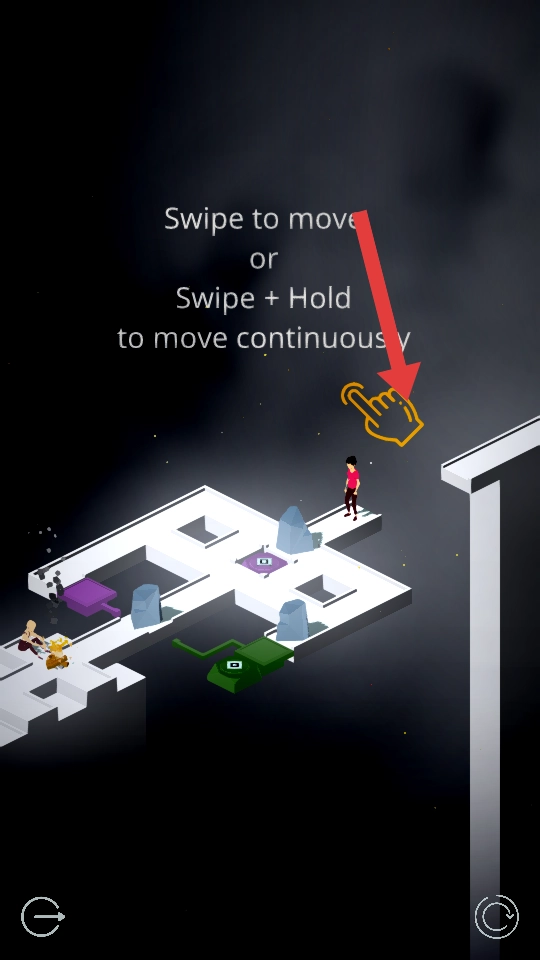 滑动屏幕来操控红衣角色移动,遇到阶梯时滑动摇杆就能向上攀爬;当靠近石块时,可以尝试推动它,借助石块搭建出前进的路径。
